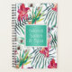 This tropical themed planner in carefree island style has a colourful pattern of exotic orchids, lilies and parrot flowers with scattered palm fronds and foliage over a contrasting white background. An aqua square frame accents your business or personal text on the front of the planner. It makes a wonderful choice for a variety of business and personal uses and is a part of a special business suite of products catering to customers in tropical climates.