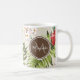 An exotic tropical pineapple floral pattern mug that can be personalised. Add your name and monogrammed initial to the dark brown rounded hexagon badge to make it uniquely yours. This is part of the Tropical Pineapple Floral Emperador Monogram Collection.