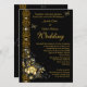 Exotic Wedding Black Gold Floral Butterfly Invitation