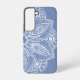 Exotic White Mandala on Blue Background Samsung Galaxy S22 Case