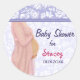 Profile of pregnant woman dreaming of her baby as she cradles her stomach. Baby Shower sticker features a soft lavender floral background. Customise name and date text with your information. Other matching items in my store.
