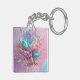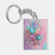 Exploding Paint Abstract Pink Turquoise Lilac Key Ring