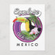 explore Isla Holbox beach mexico travel patch with a beautiful Toucan bird.