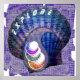 A blue scallop seashell and some mysterious distorted Russian writings, teardrop and crescent shapes. The text is customizable. Designed by Alexandra Cook aka Linandara for a bright and happy tomorrow.