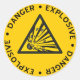 Danger - Explosive - yellow sticker with black lettering and explosive warning sign.