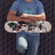 Elevate your ride with our skateboard featuring a stunning design inspired by abstract expressionism and mixed media street art, perfect for those who appreciate unique artistic flair.
