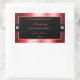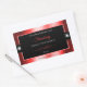 The design features a noble shimmering red frame with fine decor lines, on a plain black background.