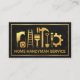 An exquisite black textured layer is accentuated by a faux gold rectangular frame with a gold handyman construction tools design. Just below this design lies your gold business name.