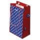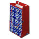 The exquisite blue swirl gift bag quickly wraps your present in style. Perfect way to present gifts at a corporate celebration. The front and back panels have all-over complementary patterns featuring bright blue swirls. The side panels are bright red with an occasional small blue swirl. Original design by Anne Bell.