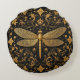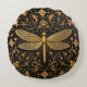 Exquisite Golden Dragonfly with Floral Art Round Cushion