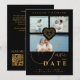 Exquisite Faux Lace Gold and Black 3 Multi Photos Collage Wedding Save the Date Card.