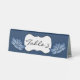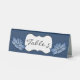 This table tent sign features a deep navy blue background with an elegant flourished frame flanked by two powder blue lotus blossoms. Sample text sits inside the frame that you can customise with your own table numbers or other information, so that seating can go more smoothly at your spring-themed wedding. Be sure to check out the full Exquisite Lotus in Blue collection to find more products, including invitations, guest books, napkins, and even favour boxes, with matching designs that will allow for a truly coordinated wedding or special event.