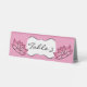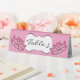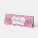 This table tent sign features a petal pink background with an elegant flourished frame flanked by two bright pink lotus blossoms. Sample text sits inside the frame that you can customise with your own table numbers or other information, so that seating can go more smoothly at your spring-themed wedding. Be sure to check out the full Exquisite Lotus in Pink collection to find more products, including invitations, guest books, napkins, and even favour boxes, with matching designs that will allow for a truly coordinated wedding or special event.