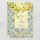 Exquisite Mediterranean Tiles and Floral & Lemons Garland Wedding Save the date Cards in Yellow and Blue Marine.