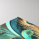 A beautifully detailed digital artwork features a stylised peacock amidst swirling patterns. The vibrant turquoise and gold hues create a mesmerising texture.