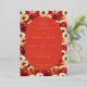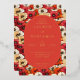 This elegant wedding invitation features a vibrant floral design with rich reds, oranges, and creams, creating a warm and inviting atmosphere. The central oval shape is adorned with sophisticated typography that complements the lively background of blooming flowers. Perfect for celebrating a joyous occasion, this design exudes romance and charm, making it ideal for couples looking to set a festive tone for their special day. With customizable text areas, you can personalize every detail to match your unique celebration.
