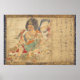 This is a Japanese colour print from the 12th Century. It's titled: Tenkeisei - God of Heavenly Punishment, or: Extermination of Evil. In it we see a scary looking demon god with four arms, fighting, eating, crushing, destroying and doing all sorts of atrocious things to these humans / creatures. Imagine the impact of this print when viewed in the 12th C! (long before TV). This is a relatively colourful print: red, yellow / gold, blue, green, orange and black colours were used. The artist also wrote something in Kanji and Hiragana characters (Japanese writing).