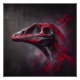 An abstract portrait showcasing the head of an extinct dinosaur. Painted with red and charcoal colours in an artistic style, this captivating artwork unfolds against a dark shady background. Witness the beauty in the mysterious echoes of the past in this very captivating piece.
