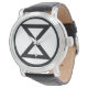This symbol represents extinction in general. The circle signifies the planet, while the hourglass inside serves as a warning that time is rapidly running out for many species. Time is running out.