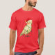 I give wanted to give this a 4 instead of a 5 because these Basic DARK T0shirts run unexpectedly SLIM or Narrow. Which is great if you do not have a potbelly, but I have a paunch. It isn't the shirt's fault that I've got a beer belly. The design and shirt itself is a quality cotton shirt. The color is more of a deep purple, but still a very pretty color. The Basic DARK T-shirts run a bit SLIMMER than the Basic Ts. The neck is a fraction narrower (or seems to be narrower) also. I'm a paunchy middle-aged woman and my neck is 12 inches (31cm) thick and the neckline fell about the same as in the photo of the man, and I had the desire to tug it a bit. So if you're a thick necked man or like loose shirts, be aware these are slimmer shirts. Once I get rid of my lockdown paunch it'll look great. The shirt washed well in cold water with no apparent bleeding. We don't have a dryer, so it hung dry. Did not shrink. Love the colors and the design. The design looks smaller on my shirt than it does on the model on-line. But still, it looks good on the shirt. The printing looks as it does on the model, just the size seems fractionally smaller. Washed garment in cold water, hung dry and design appeared unaffected.