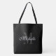 Extra large big black tote bag with chic monogram. Elegant monogrammed shoulder bag for shopping, groceries, office, books, sports, wedding and more. Classy black and white typography design template. Double sided all over print with black handles. Chic Birthday gift ideas for women.