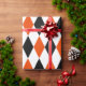 Extra Large Black, Bright Orange & White Harlequin Wrapping Paper