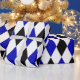 A wrapping paper designed with a black, royal blue and white harlequin pattern in extra large size. Customise the white background colour, pattern size, among other options.