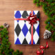 Extra Large Black, Royal Blue and White Harlequin Wrapping Paper