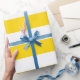A wrapping paper designed with a golden yellow and white striped pattern in extra large size. You can change the yellow for a different colour.