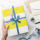 A wrapping paper designed with a yellow and white striped pattern in extra large size. You can change the yellow for a different colour.