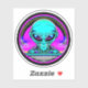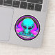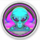 Neon psychedelic art depicting an alien and flying saucer. Generative content.