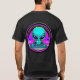 Neon psychedelic art depicting an alien and flying saucer. Generative content.
