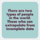 This reads, "There are two types of people in the world: Those who can extrapolate from incomplete data"
