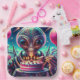 Extraterrestrial Alien Being eating Birthday Cake Paper Plate