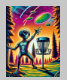 Colourful Extraterrestrial alien being throwing disc golf colourful ai art.