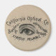 Victorian eye - optical advertisement - Simple Eyes were great advertisements for opticians in the Victorian era -- and this one is a beautiful black ink illustration of an eye advertisement and curly Vintage writing, reminiscent of the days of old westerns and vintage eye doctors. The background is aged brown paper. The advertisement says, "California Optical Co., Scientific & Strictly Reliable, Manufacturing Opticians". … There's an antique sunburst around the eye, and the swirly letters circle the eye as well. The vintage eye advertising is a great addition to gifts for people who love old-fashioned advertising art.