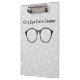 Eyeglasses theme business clipboards with eyeglass pattern lightly printed in the background and a dark pair and company name you can replace with your own business name or professional name in its place. Created for an Eye Doctor, eye care centre, or Optometrist.