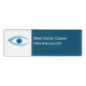 Modern eye doctor office staff editable name tags designed with a cool modern eye graphic in shades of blue and white as a stylish yet professional template design. An editable template you can customise online for your entire retail or medical office employees.