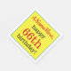 This eye-catching birthday themed paper napkin design features a message like "ANameHere, happy 66th birthday!", where the name and birthday number can be personalised. Customised paper napkins like these might be used at somebody’s birthday party.