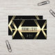 Make a lasting impression with this eye catching and elegant business card design featuring modern black geometric graphics with light gold shimmer background.