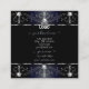 Make a lasting impression with this luxurious and elegant business card design featuring fine filigree ornate ornaments with diamonds and sparkling stars. The borders are shimmery blue with silver decor on a black background.