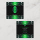 Make a lasting impression with this luxurious and elegant business card design featuring fine filigree ornate ornaments with diamonds and sparkling stars. The borders are shimmery green with silver decor on a black background.