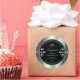Matching a luminous shimmery mint teal coloured frame and cute hearts graphic on a black background.