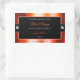 The design features a noble shimmering orange red marbled frame with fine decor lines, on a plain black background.