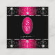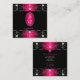 Make a lasting impression with this luxurious and elegant business card design featuring fine filigree ornate ornaments with diamonds and sparkling stars. The borders are shimmery pink with silver decor on a black background.