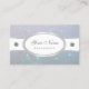 Make a lasting impression with this elegant and quality business card template featuring sparkling faux pearl glitter spark with diamonds graphics. Matching a pretty and noble oval silver frame on a baby blue background.