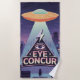 EYE CONCUR is more than a phrase—it’s a message from beyond. A lone saucer hovers above a black pyramid, casting down a piercing beam of awareness. At the centre, the all-seeing eye watches in silence, glowing with a truth we may not be ready to face. The stars blink, the city holds its breath, and the abductors observe with ancient judgment. When you're at the beach, observing the local species at play, frolicking in the waters, one thought is in your mind: