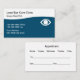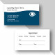 Eye care Ophthalmologist appointment business cards with eye logo you can replace or leave in place. A business card and appointment reminder combination in a modern simple layout you can customise online.