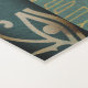 On a green sage backdrop are ombre shaded copper and mint hieroglyphs with a green band in the middle with a copper repeated egyptian eye of ra creating chic mysterious vibes.
