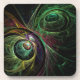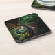 Eye to Eye Modern Fractal Green Gold Abstract Art Coaster